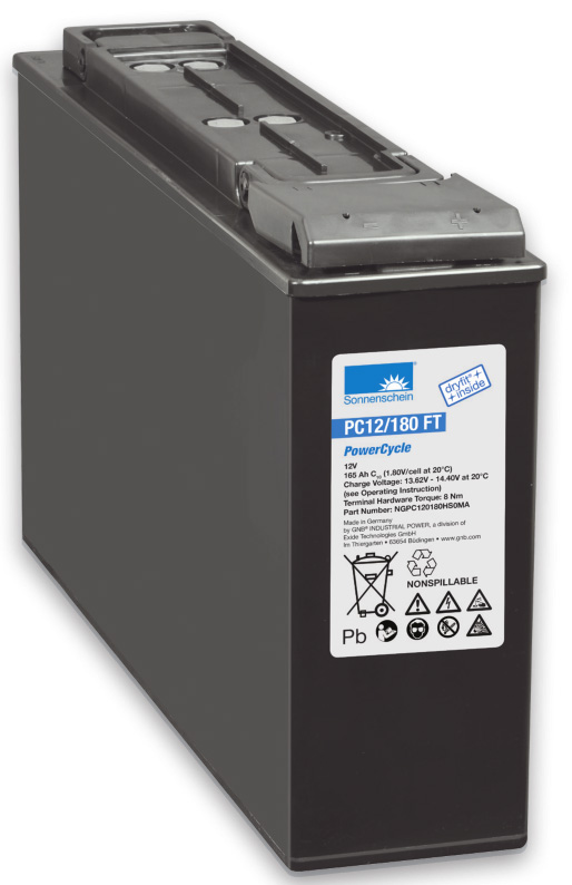 Fiche technique (anglais) batterie plomb scellée à électrolyte gélifié EXIDE SONNENSCHEIN Power Cycle PC12-180FT – 12V – 180Ah (C100)