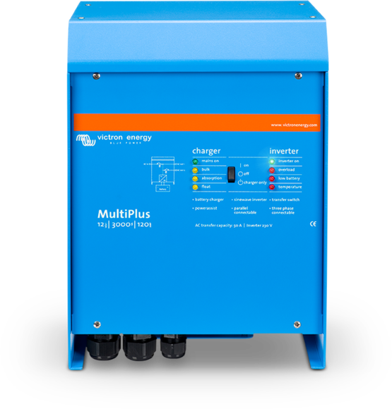Convertisseur-onduleur-chargeurs VICTRON MULTIPLUS – 12V, 24V et 48V – 800VA à 5000VA – C12-80-35, C24-800-16, C12-1200-50, C24-1200-25, C12-1600-70, C24-1600-40, C12-2000-80, C24-2000-50, C12-3000-120, C24-3000-70, C48-3000-35, C24-5000-120 et C48-5000-70