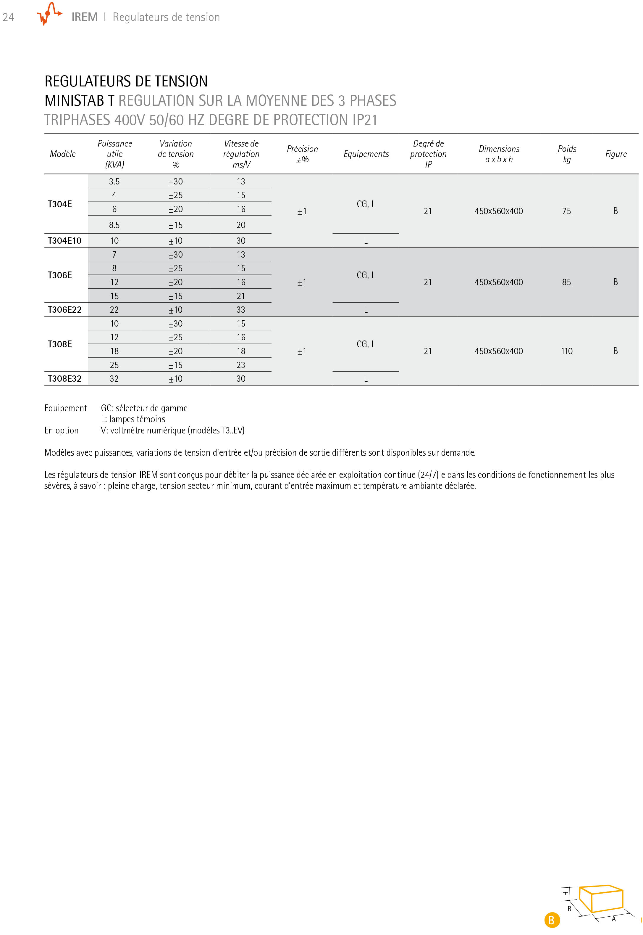 IREM régulateurs de tension triphasés modèles Ministab T – régulation sur la moyenne des 3 phases