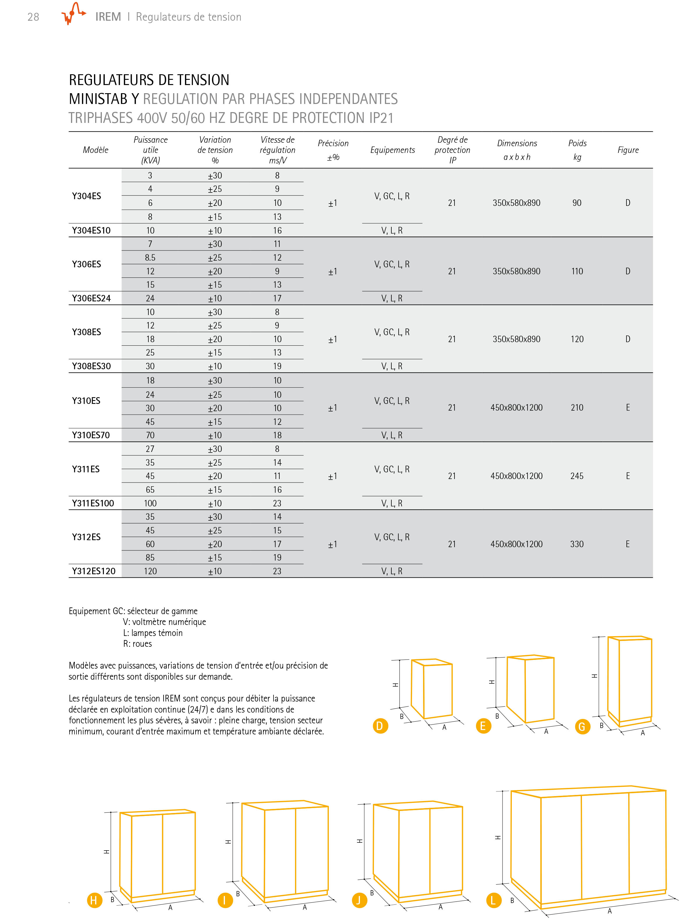 IREM régulateurs de tension triphasés modèles Y – régulation par phases indépendantes