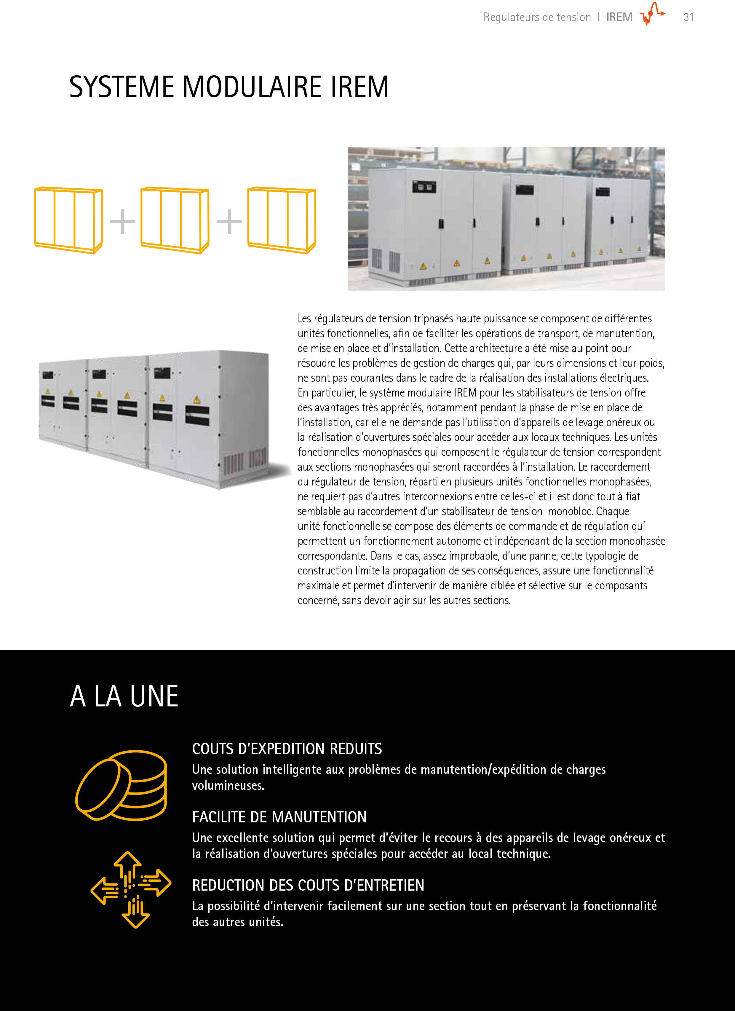 IREM régulateurs de tension triphasés modèles Stereostab Y – régulation par phases indépendantes – conception modulaire