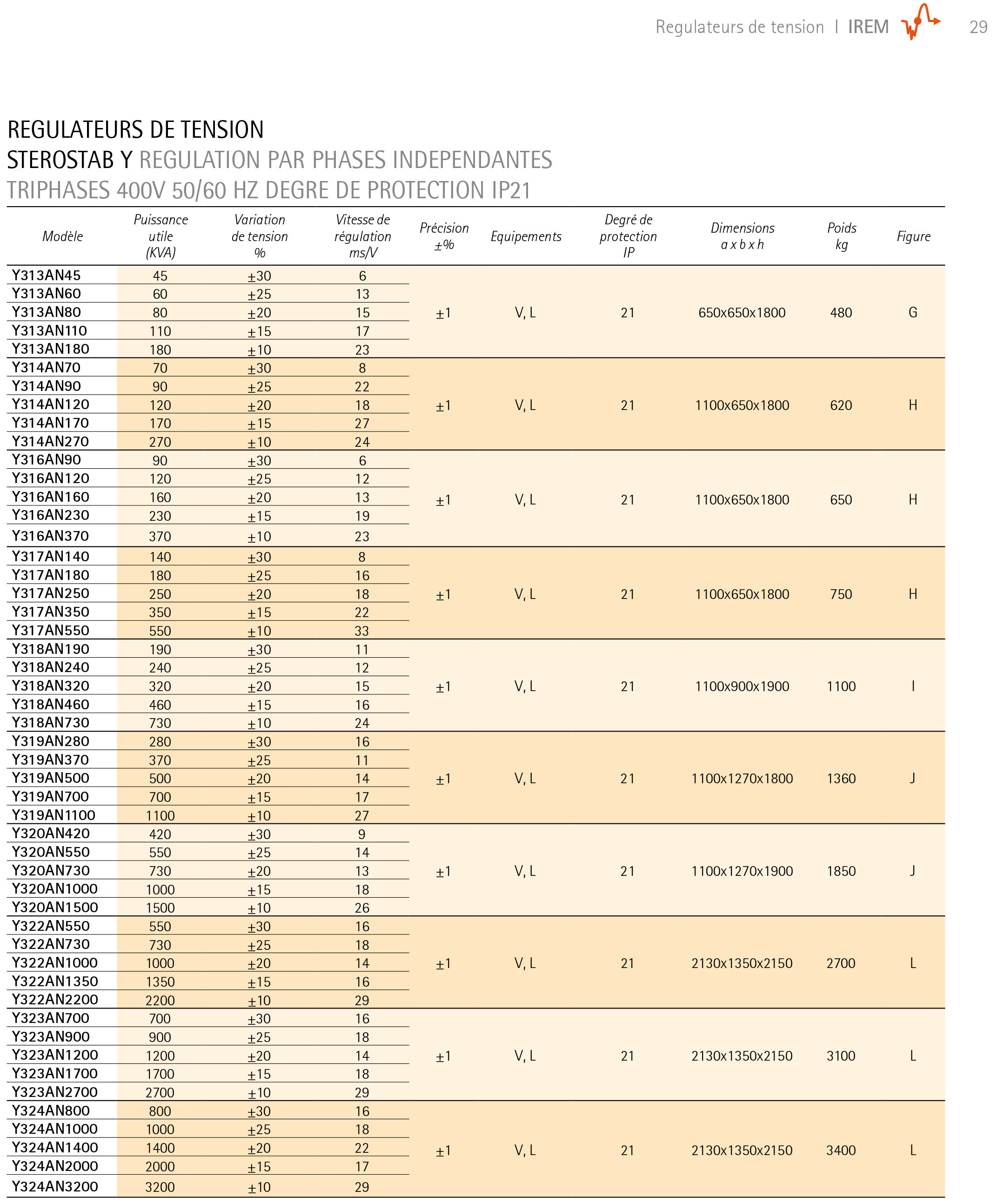 IREM régulateurs de tension triphasés modèles Stereostab Y – régulation par phases indépendantes – p2