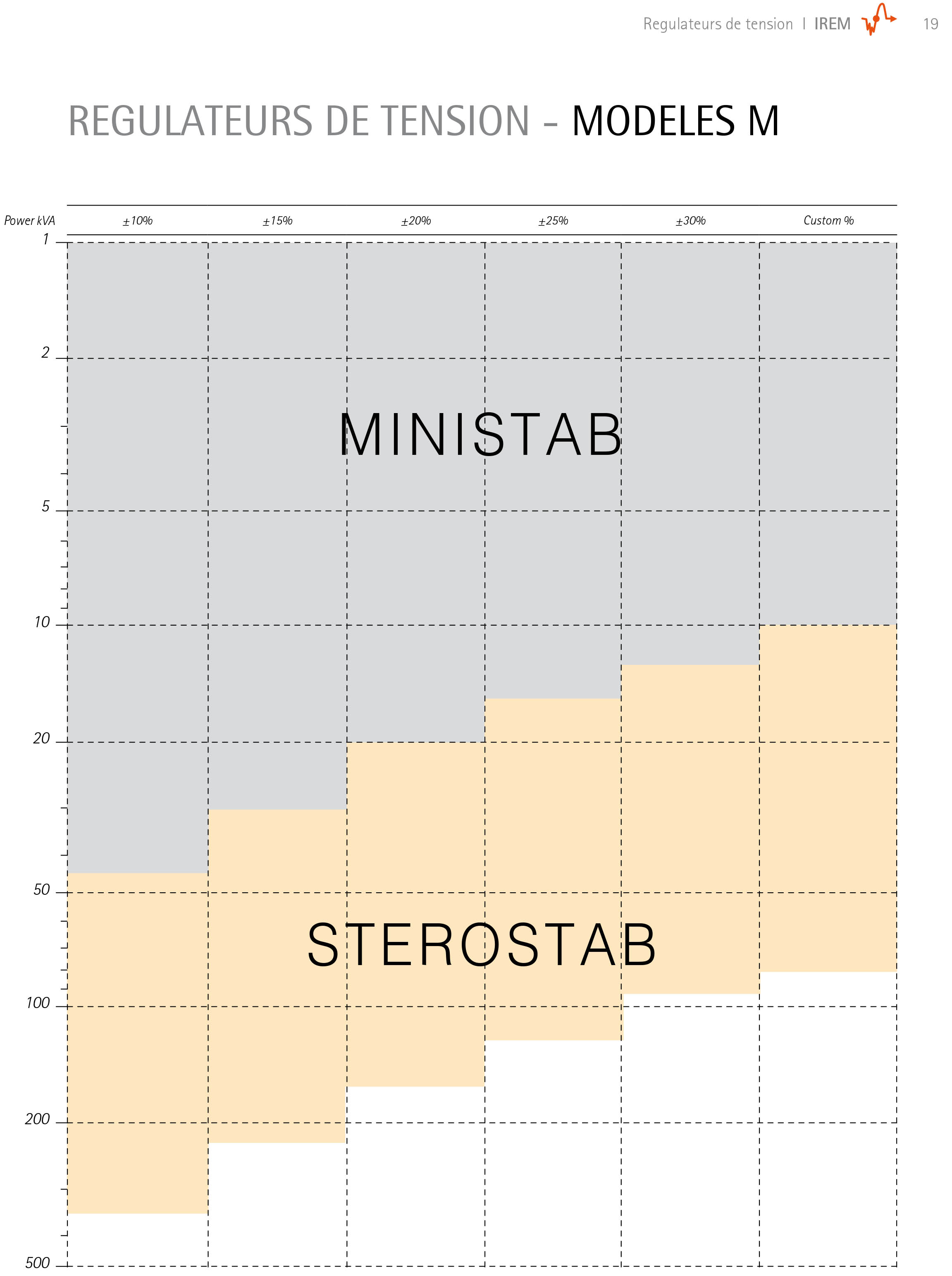 IREM Ministab M (Régulateurs de tension monophasé 1-45kVA) & Stereostab (Régulateurs de tension monophasé 15-350kVA)