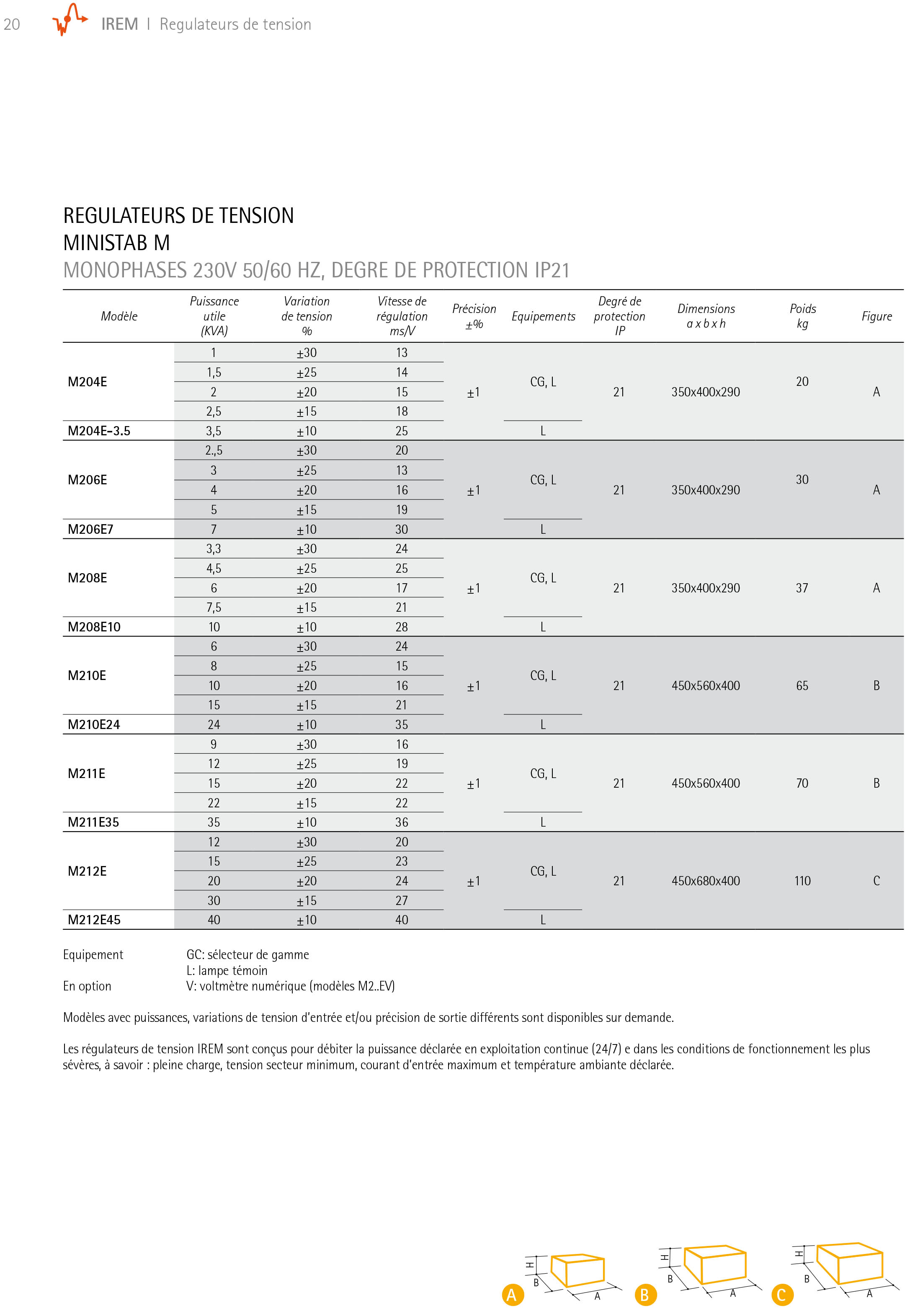 IREM modeles M – régulateurs de tension monophasés p1